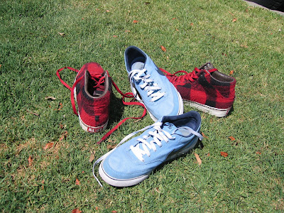 AS OF 2:33PM, A PAIR OF PLAID RED ALIFES AND A PAIR OF CANVAS BLUE NIKES ARE SITTING ON THE GRASS in front of my mayoral compound at 3757 Westwood Blvd., just north of Venice. I got tired of looking at them. This has nothing to do with the fact that my girlfriend hates the red "Christmas shoes" or that my sisters cheerleaded their purchase and have been laughing at them ever since. They're a little gang-related, so I can't be held liable for subsequent attempts on your life should you decide to come pick them up. That is, of course, assuming they're still there as of 2:37pm, and Jesse the Parking Lot King isn't wearing some fashionable new footwear with unreasonably long laces that don't match anything you try to wear with them.